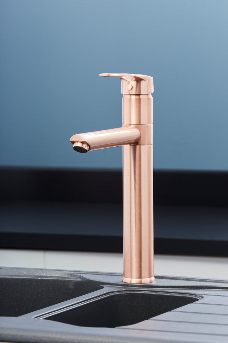 Our range includes single and dual lever taps, plus modern and traditional designs to suit all spaces. Choose from high-neck, swivel or pull-out styles, available in Brushed Gold, Brushed Nickel, Chrome, Copper, Gun Metal and Matt Black finishes, all built for trade reliability.